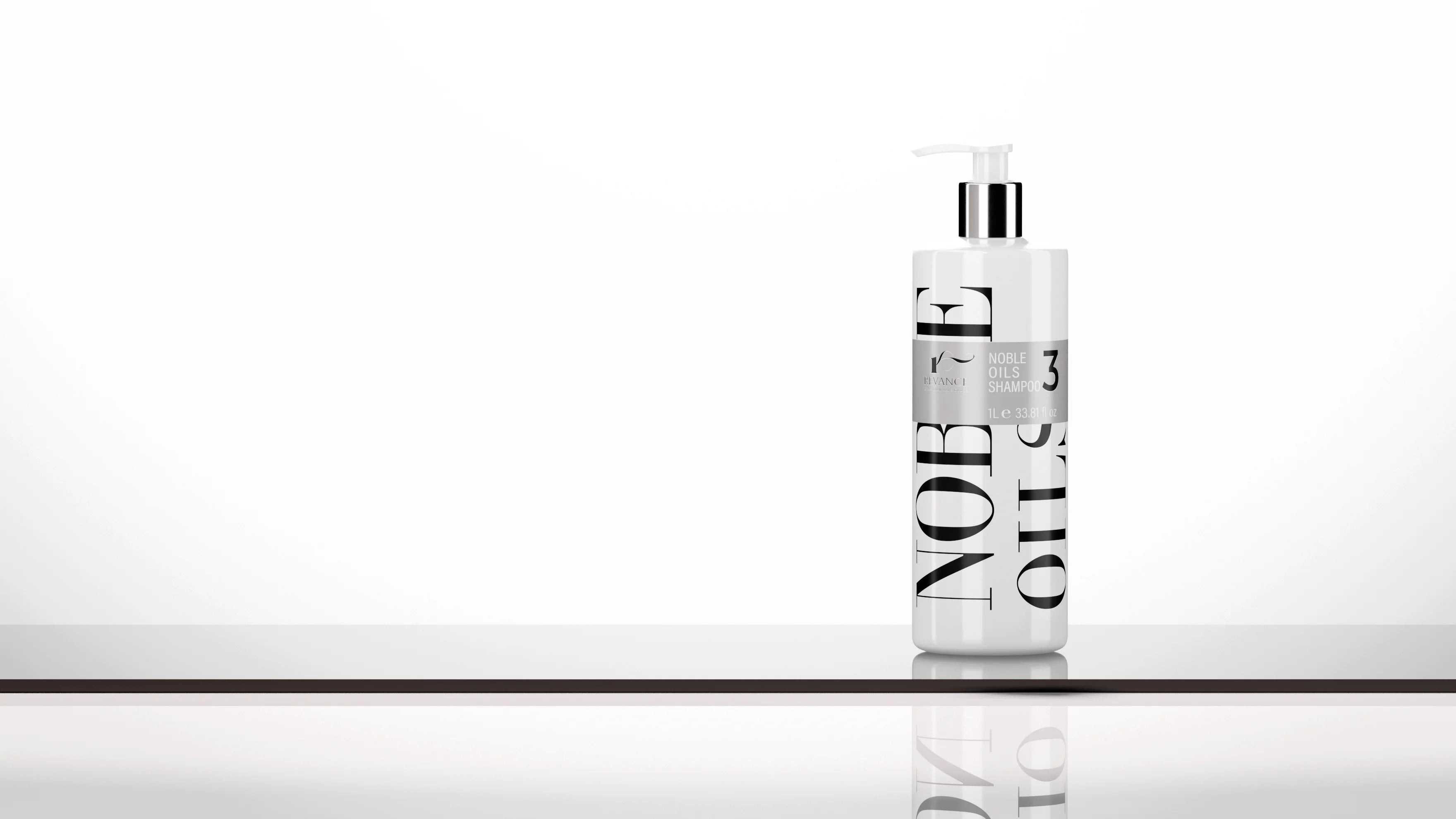 The NOBLE OIL SHAMPOO REVANCE features a blend with 11 noble oils (Argan, Ojon, Monoi, Macadamia, Coconut, Almond, Lotus Flower, Chamomile, Matricaria, Rose, and Linseed) that promotes a gentle cleansing with a velvety touch and intense hydration.